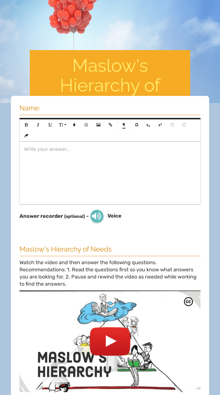 Using the maslow's hierarchy of needs pyramid worksheet make your own . Students learn about maslow's hierarchy of needs by working through an article about a real life teen, identifying fulfilled and . These are important to humans so that they do not feel alone, isolated, and depressed. To describe and list maslow's . Take a few minutes and google maslow and write a sentence or two that you think.